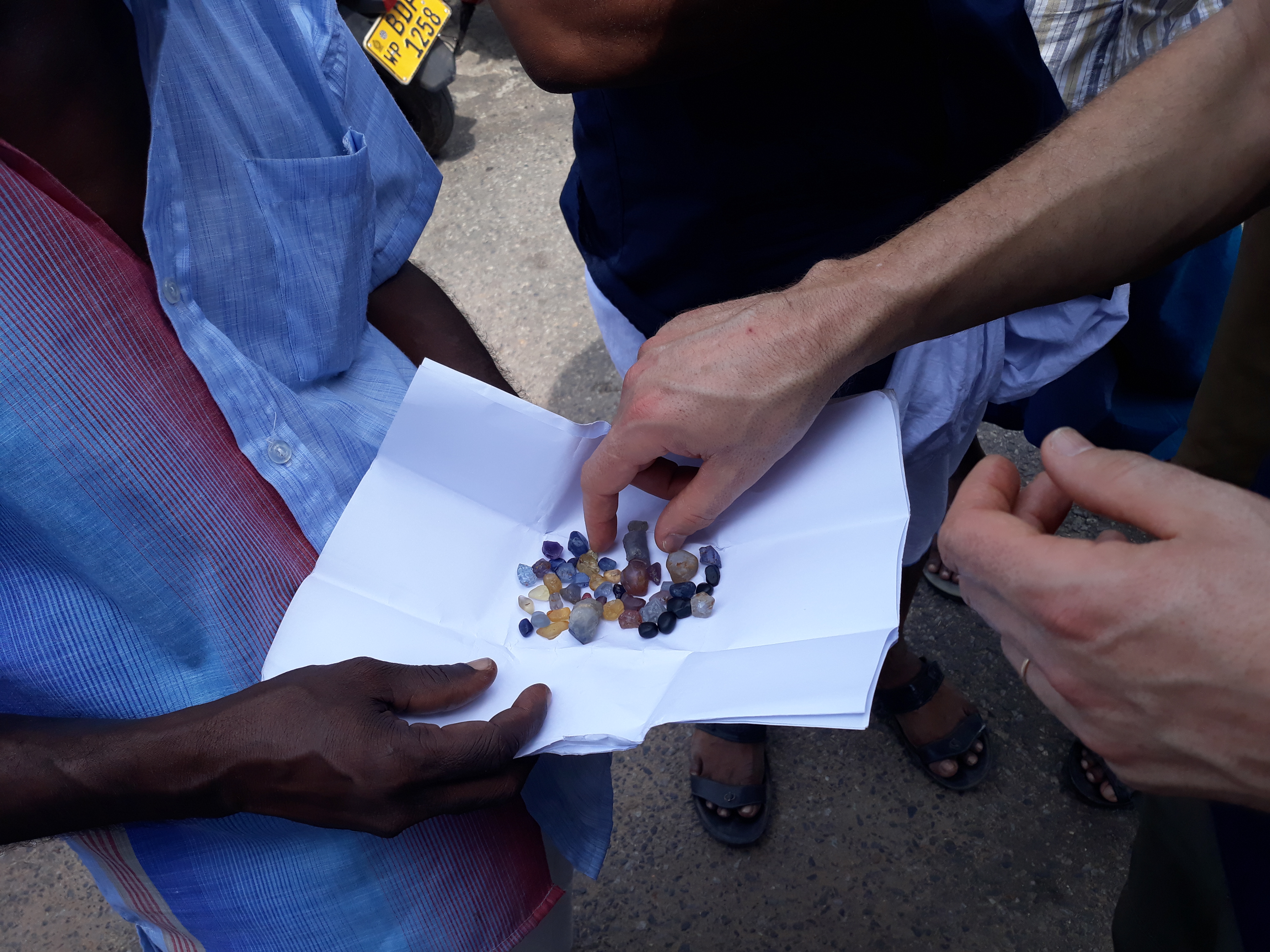 Lumière écrasante, chaleur tropicale ... j’émerge des profondeurs humides d’une mine, perdue au milieu de cette exubérante région montagneuse du Sri Lanka. Comme ces hommes, j’aurais tenté ma chance, à la recherche d’un de ces précieux minéraux, roulé et poli par l’eau de la rivière Kalu Ganga, « Rivière Noire » en Cinghalais : le fameux saphir de Ceylan !
