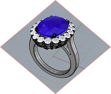 Après les croquis et le choix des pierres, nous vous présentons des dessins techniques en trois dimensions, soumis à votre validation. Un prototype en cire est ensuite réalisé, à partir de l’impression 3D du dessin technique.
